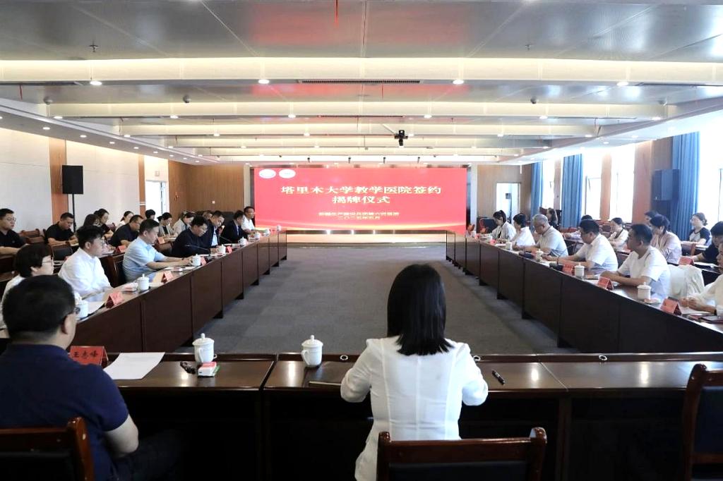 5月20日,塔里木大学教学医院签约揭牌仪式在第六师医院举行。第六师五家渠市党委副书记、副师长于志奇,塔里木大学党委常委、副校长谢建新出席。