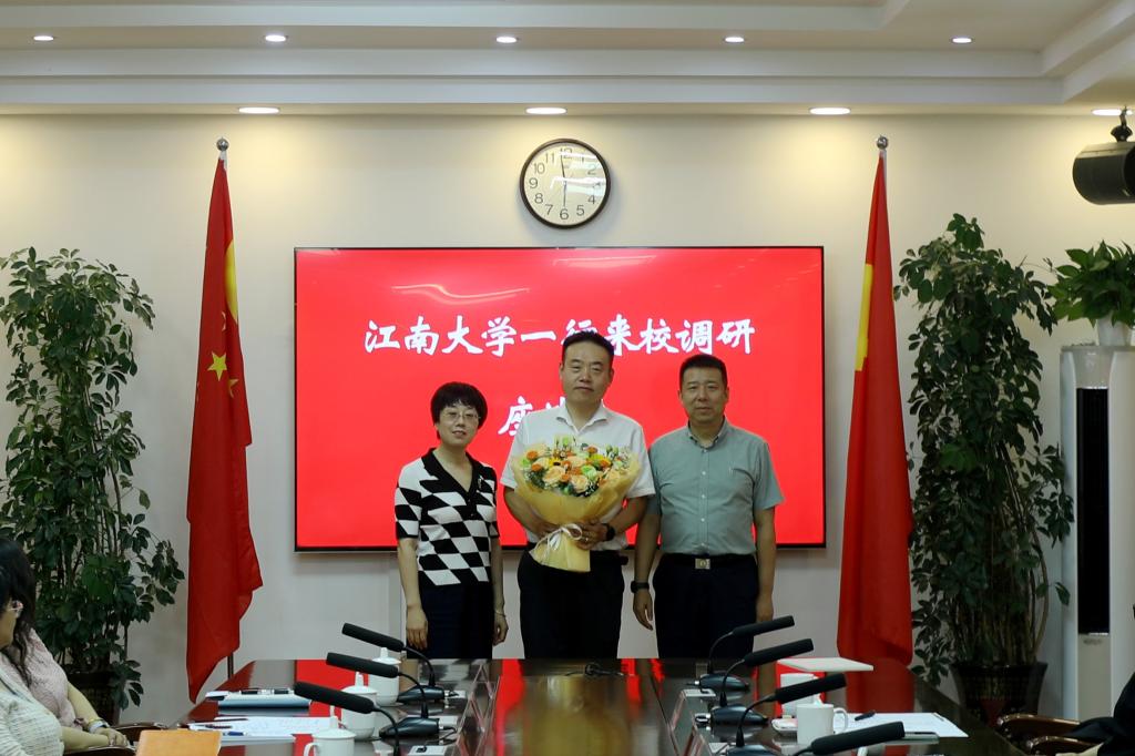 7月8日,江南大学原副校长、纺织科学与工程学院高卫东教授,党委常委、组织部部长张梁一行来访,与我校党委副书记、校长闫祥林,党委副书记于军,党委常委、组织部部长张伟信等领导,在行政楼四号洽谈室深入交流。