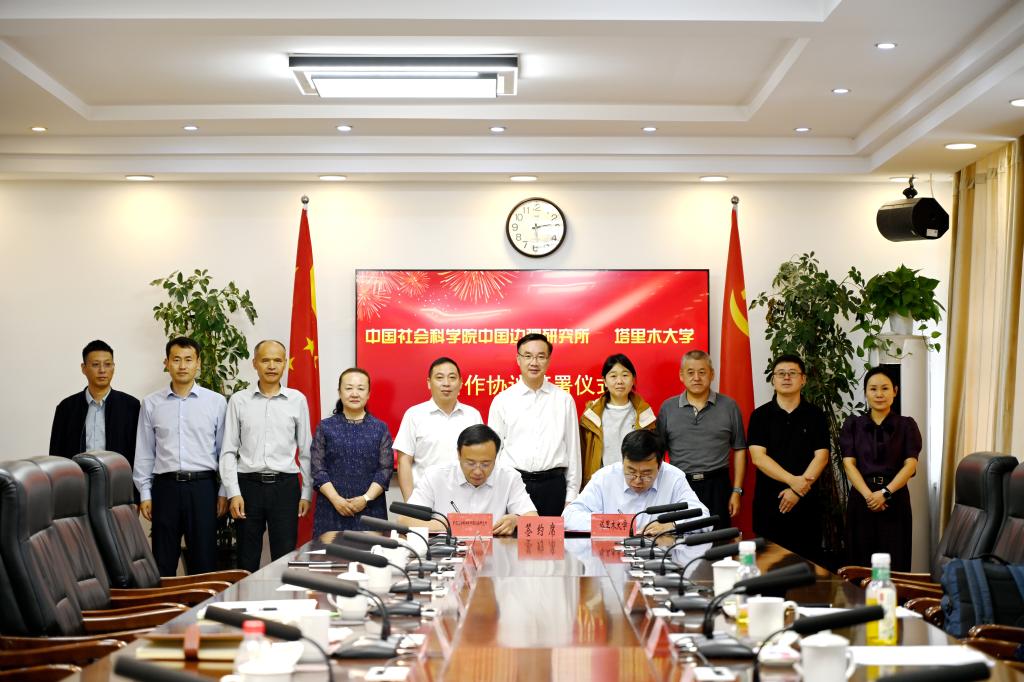 中国社会科学院中国边疆研究所工作人员,塔里木大学相关部门、学院领导参加。签约仪式在行政楼五号会议室举行。(文/摄:赵建博 阿依江·吉格尔)