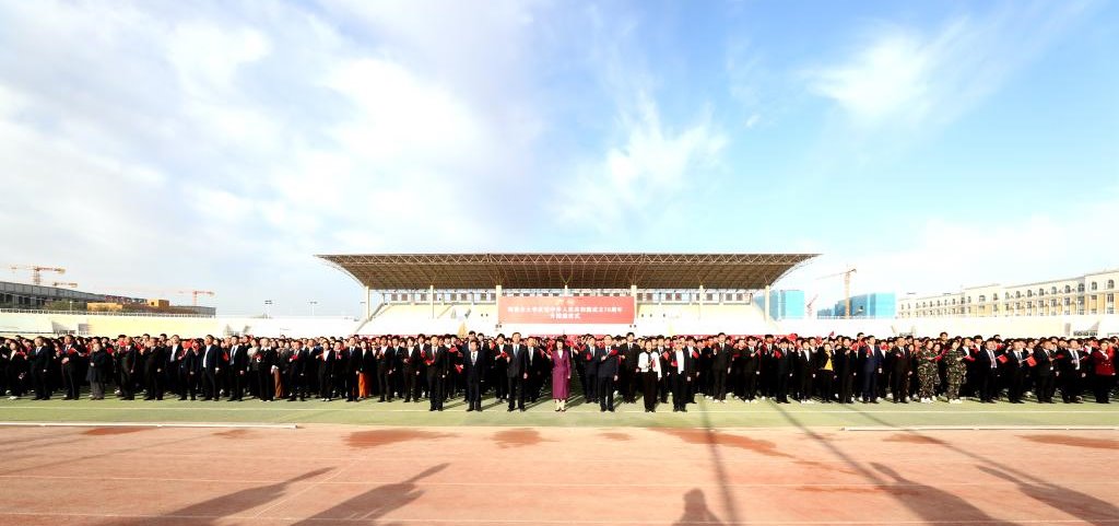 10月1日上午,塔里木大学庆祝中华人民共和国成立76周年升国旗仪式在西区运动场举行。