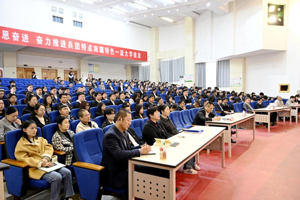 闫祥林动员指出,举行此次集中大课,旨在进一步筑牢全体党员的思想根基,强化党员身份意识、责任意识和先锋意识,为落实立德树人根本任务、推动学校事业高质量发展,提供坚强政治和组织保障。全校党员干部要珍惜培训机会,切实将培训的成果转化为提升党性修养、增强履职能力的强大动力。始终牢记“国之大者”,时刻铭记党员身份,筑牢政治品格,锤炼过硬本领,勇担时代使命,牢牢把握教育的政治属性,以绝对的忠诚办好党放心的大学,牢牢把握教育的人民属性,以优良的作风办好人民满意的教育,牢牢把握教育的战略属性,以胡杨精神激励担当作为,为加快建设兵团特点南疆特色一流大学不懈努力,在推进中国式现代化南疆实践、兵团实践中作出新贡献。