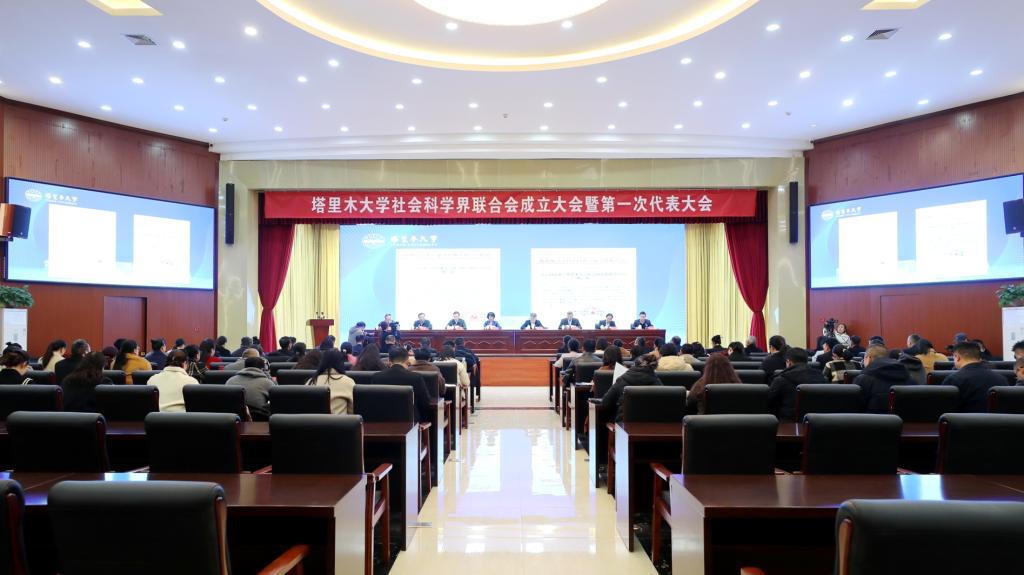 11月26日下午,塔里木大学召开社会科学界联合会成立大会暨第一次代表大会。自治区社科联党组成员、副主席艾比•沙拉木,兵团党委宣传部理论处副处长胡湘豫,塔里木大学党委书记张爱萍,党委副书记、校长闫祥林,党委副书记于军,党委常委、副校长万传星,党委常委、副校长、宣传部部长王成涛,党委常委、统战部部长高庆华出席。全体正式代表参加。