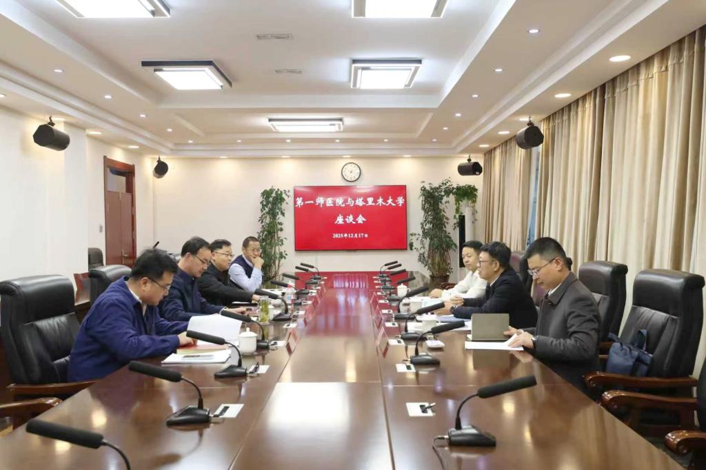 闫祥林感谢第一师医院对我校医学专业建设的支持帮助,希望双方以谋划“十五五”发展规划为契机,创新合作机制,在人才培养、项目申报、平台建设等方面深化合作,实现资源共享、协同发力,推动校医合作落地落实。