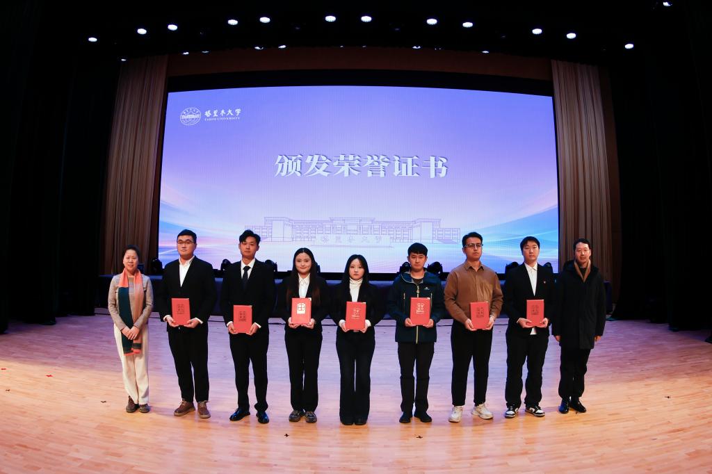 党委研究生工作部副部长张昊宣读了《关于表彰塔里木大学第十三届研究生学术论坛优秀论文的决定》,张立秋、各学院领导为获奖个人颁奖。