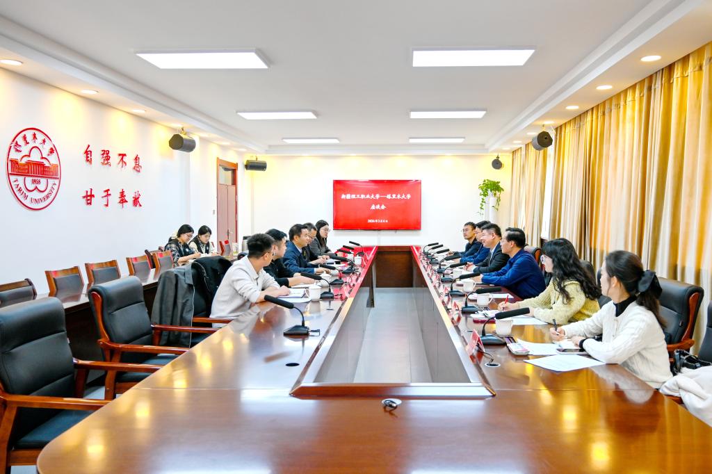 随后,双方在行政楼五号会议室召开座谈会,围绕有关合作事宜展开深入交谈。大家共同观看了塔里木大学宣传片。