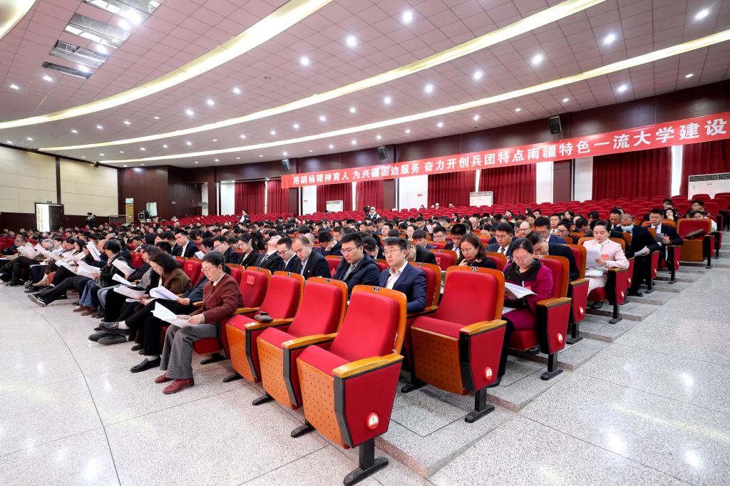 新时代赋予新使命,新使命呼唤新担当。报告强调,全校党员干部和师生员工要更加紧密地团结在以习近平同志为核心的党中央周围,坚定拥护“两个确立”、坚决做到“两个维护”,在学校党委的坚强领导下,大力弘扬胡杨精神,以“一马当先”的闯劲、“马到功成”的干劲,深耕学科建设、强化人才引育、抓实科研创新,加快建设兵团特点南疆特色一流大学,在推动兵团高质量发展、实现新疆社会稳定和长治久安总目标中展现新作为作出新贡献。