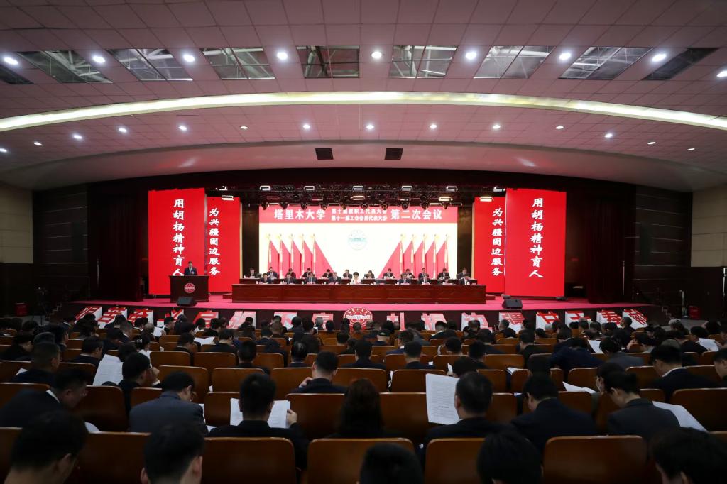 3月28日上午,在雄壮的国歌声中,塔里木大学第十届教职工代表大会第二次会议、第十一届工会会员代表大会第二次会议在文科楼B座报告厅开幕。