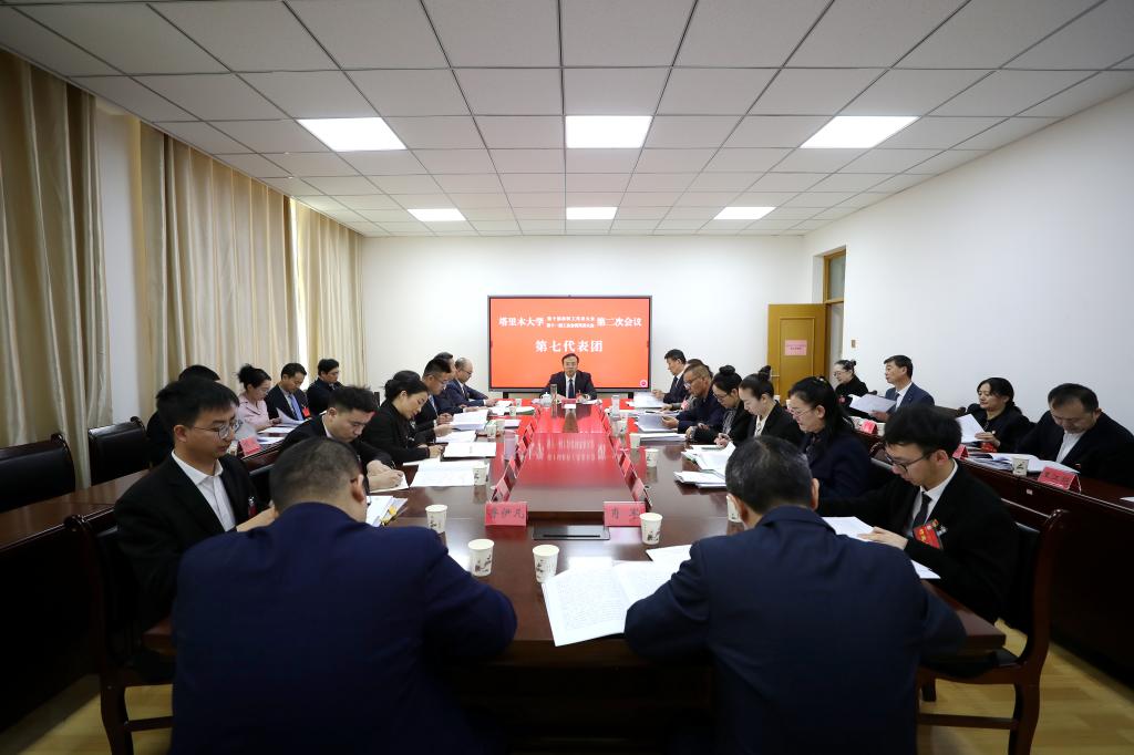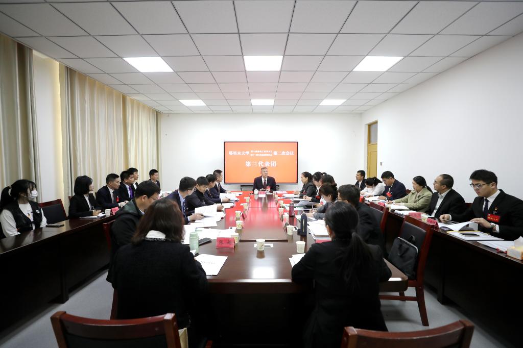 3月28日,塔里木大学第十届教职工代表大会第二次会议、第十一届工会会员代表大会第二次会议的全体代表分为八个代表团,围绕《学校“十五五”事业发展规划纲要》《学校工作报告》《学校财务工作报告》《学校提案工作报告》《学校工会工作报告》《学校工会经费审查报告》,展开了热烈讨论。校领导分别参加各代表团讨论。