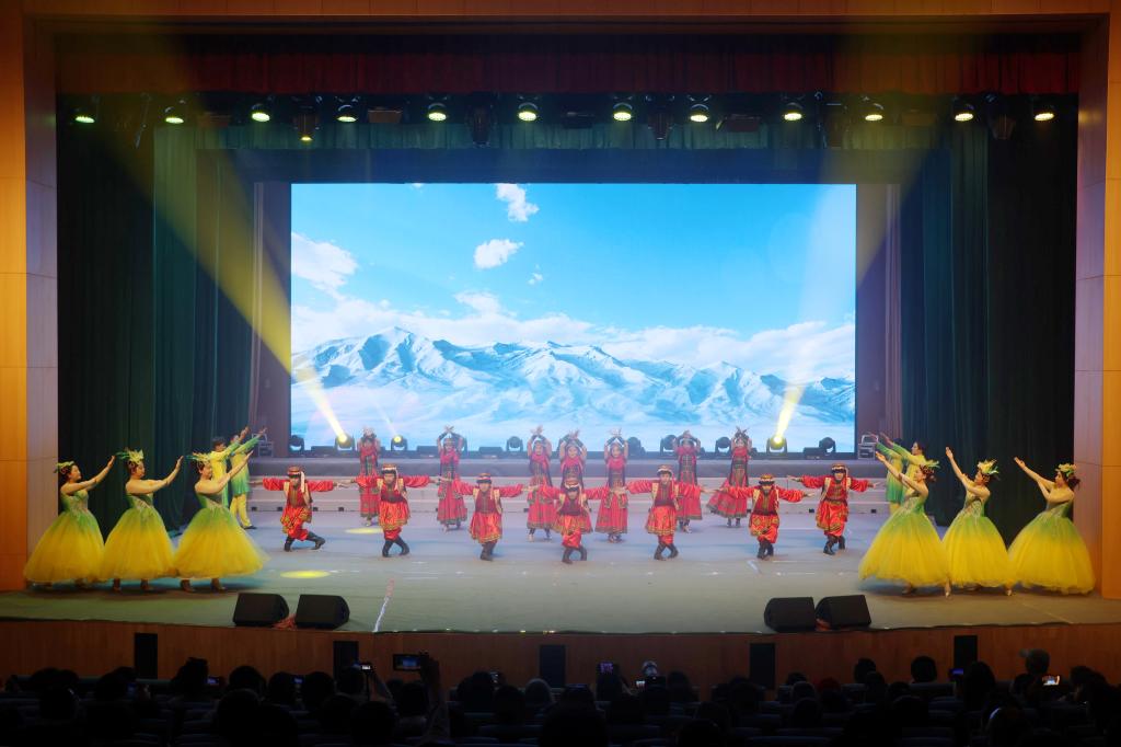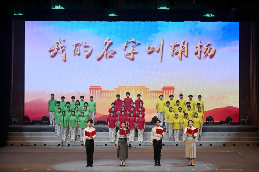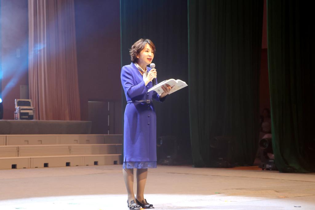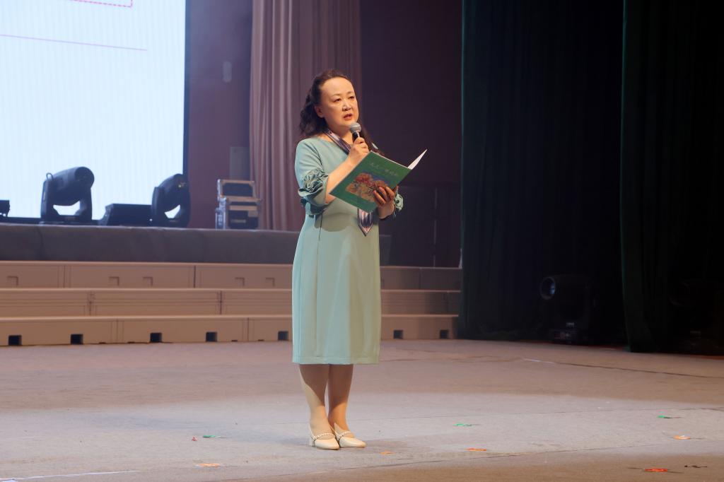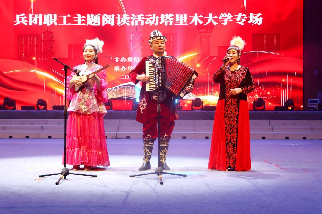 全国三八红旗集体负责人、自治区民族团结先进个人肖涛推荐教师原创诗集《我是一棵胡杨》,学生话剧团的诗朗诵《我的名字叫胡杨》,为在场师生打开了一扇扇通往精神高地的大门,让阅读如大漠胡杨,把精神根系扎进灵魂深处。托云牧场职工的个人独唱《你未曾感受到》,歌声雄浑、震撼人心,以原生态唱法,传递出兵团职工扎根边疆的赤诚与热爱。