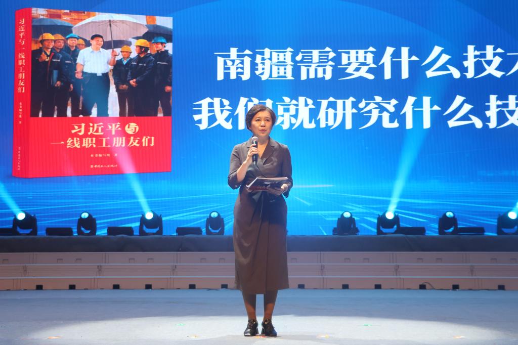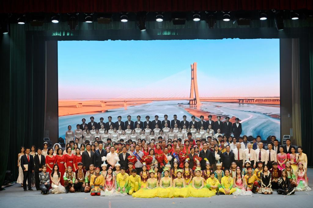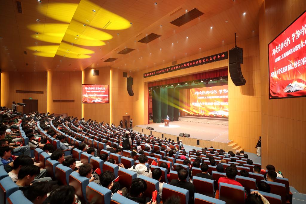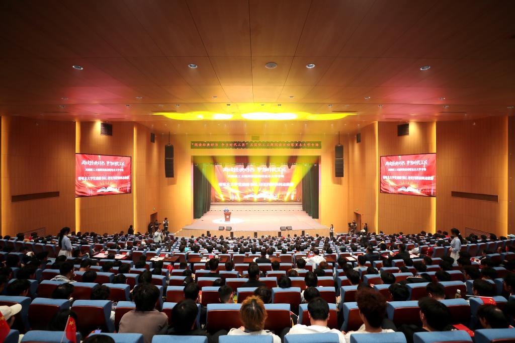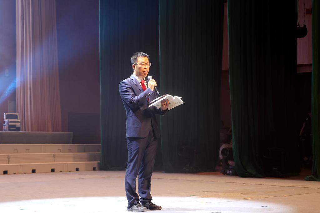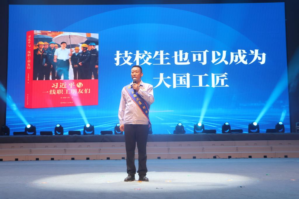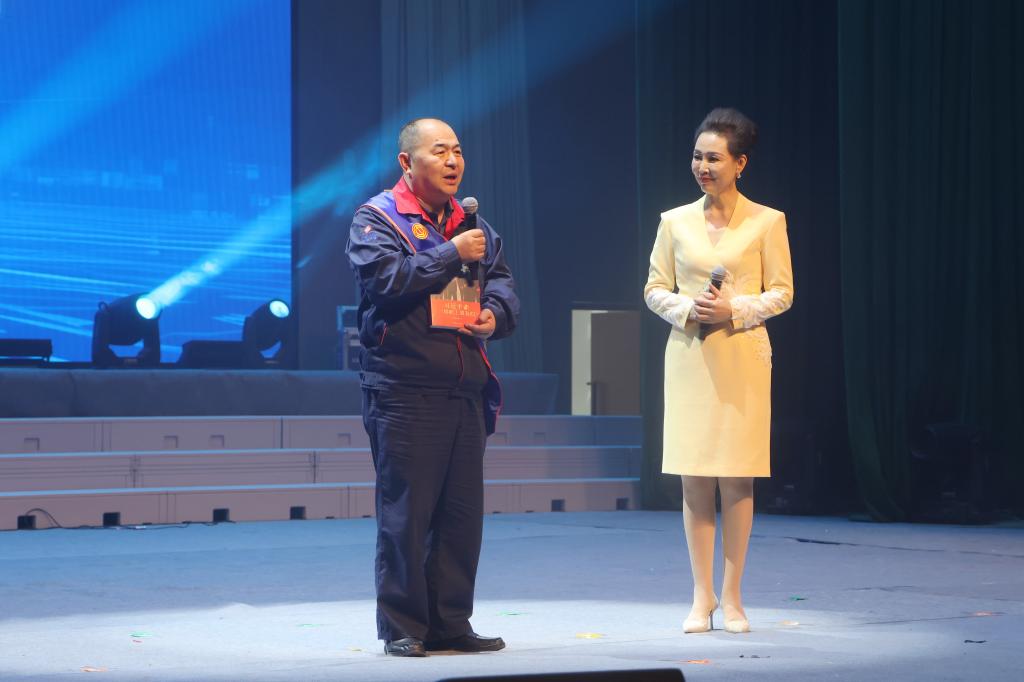 银龄教师代表的诗朗诵《胡杨深处的银晖》,讲述了扎根边疆、奉献塔大的动人故事,字里行间闪耀着“退休不褪色、余热亦生辉”的崇高情怀。学生歌舞团的舞蹈《石榴花开幸福来》,用跃动的舞步、激情的表演,奏响了民族团结的华彩乐章。全国劳模马军武,全国劳模、大国工匠杨建立,全国先进工作者吴翠云,国家教学名师周岭,大国工匠邵旭鹏,结合自身的奋斗历程,深情分享了《习近平与一线职工朋友们》阅读体会。