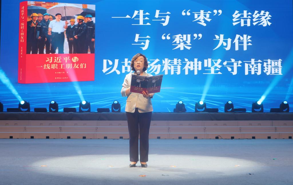全国三八红旗手李志军、兵团维稳戍边劳动奖章获得者刘义飞,全国高校黄大年式教师团队代表张书宁分享了《胡杨的种子》,结合自身奋斗历程,讲述了扎根边疆、生生不息的故事,让阅读的力量在每个人心中生根发芽。