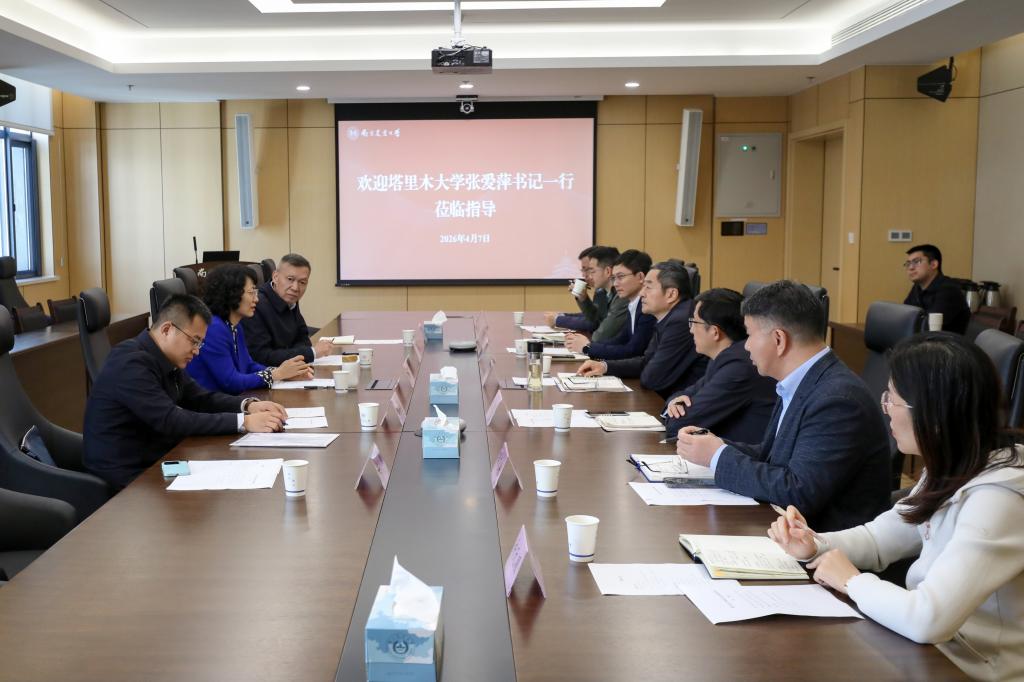 张爱萍介绍了我校发展情况,感谢南京农业大学长期以来对我校的关心和支持。希望两校以对口支援工作为抓手,在人才培养、学科建设、师资引育、科研攻关等方面进一步深化交流合作,推动南农的优质资源向南疆延伸,更好引领支撑服务南疆经济社会高质量发展。
