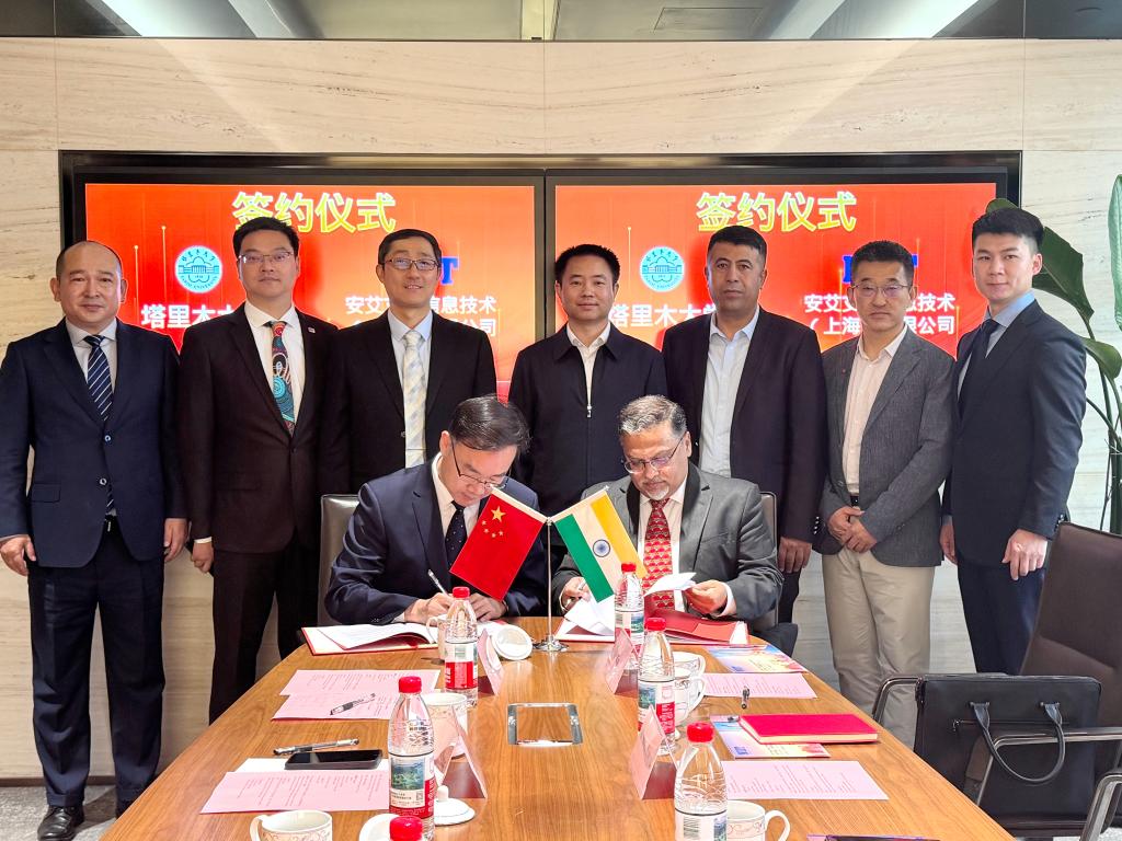 4月20日,塔里木大学与安艾艾迪信息技术(上海)有限公司召开座谈会并签订战略合作协议。塔里木大学校长闫祥林,副校长张宏荣,安艾艾迪信息技术(上海)有限公司中国区总裁Kamal Dhupe,中国区副总裁徐海峰、李经纬等领导出席。