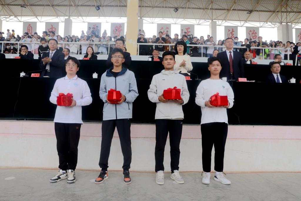 与会校领导为本届校运会团体总分前六名和“精神文明奖”、“优秀组织奖”的获奖单位,以及优秀裁判员、优秀记者、优秀志愿者进行了颁奖。