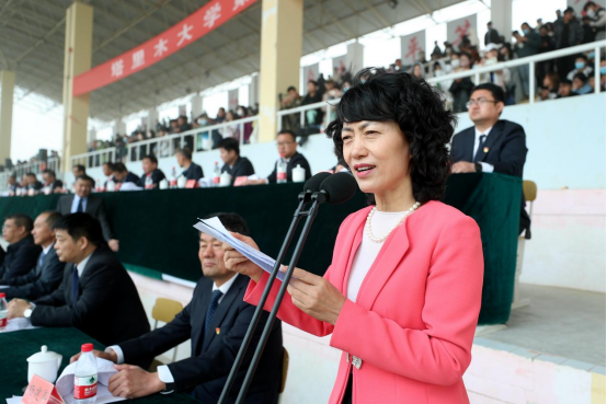 张爱萍代表学校向这次体育盛会的召开表示热烈的祝贺,向为大会的召开精心准备、作出贡献的老师们、同学们表示衷心的感谢,向本次大会的裁判员、教练员、运动员表示崇高的敬意。她指出,深入贯彻落实总书记重要批示精神,完善用胡杨精神育人模式,丰富上下求索、内外兼修、前后有为的新时代胡杨人才培养模式,全力培养立体的、大写的新时代胡杨,体育是“五育并举”全面发展之根基。体育可以养德、益智、健美、助劳,体育是落实立德树人根本任务、提升学生综合素质的基础性工程。它的本质是人格的教育,事关身心健康成长,是实现全面发展的根基,具有强壮的体魄,健全的人格,是新时代胡杨青年的必备品质。
