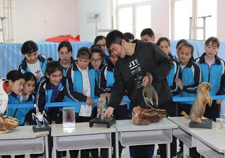 为发挥文化引领作用,弘扬科学精神,培养公民保护环境及野生动物的意识,在爱鸟周和世界地球日来临之际,在学校科协、统战部支持下,民盟塔里木大学支部、历史与哲学学院、生命科学学院师生深入南疆基层及农村中小学,开展了主题为“保护环境和谐共生”野生动物保护宣传暨南疆野生动物标本展科普活动。