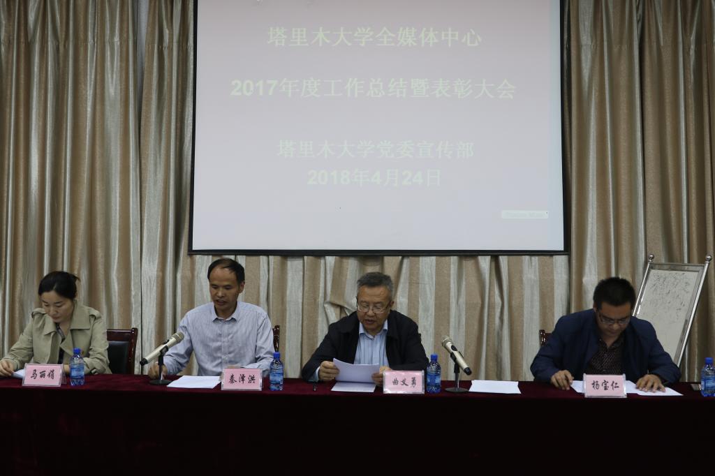 4月24日晚,塔里木大学全媒体中心2017年度工作总结暨表彰大会在老植科楼四楼报告厅举行。党委常委、副校长曲义勇出席并讲话,党委宣传部副部长秦泽洪,宣传教育科、文化管理科负责人,以及全媒体中心和广播站记者、校史讲解员参加会议。
