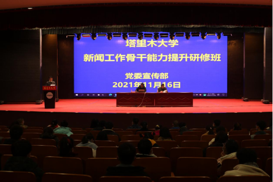 党委宣传部部长王志刚、党委宣传部副部长杨宝仁、党委宣传部新闻中心主任余明星、一师阿拉尔市融媒体中心记者周玲玲,分别作了“新闻写作”、“学校通讯员素养提升”、“学校融媒体平台建设”的专题讲座。