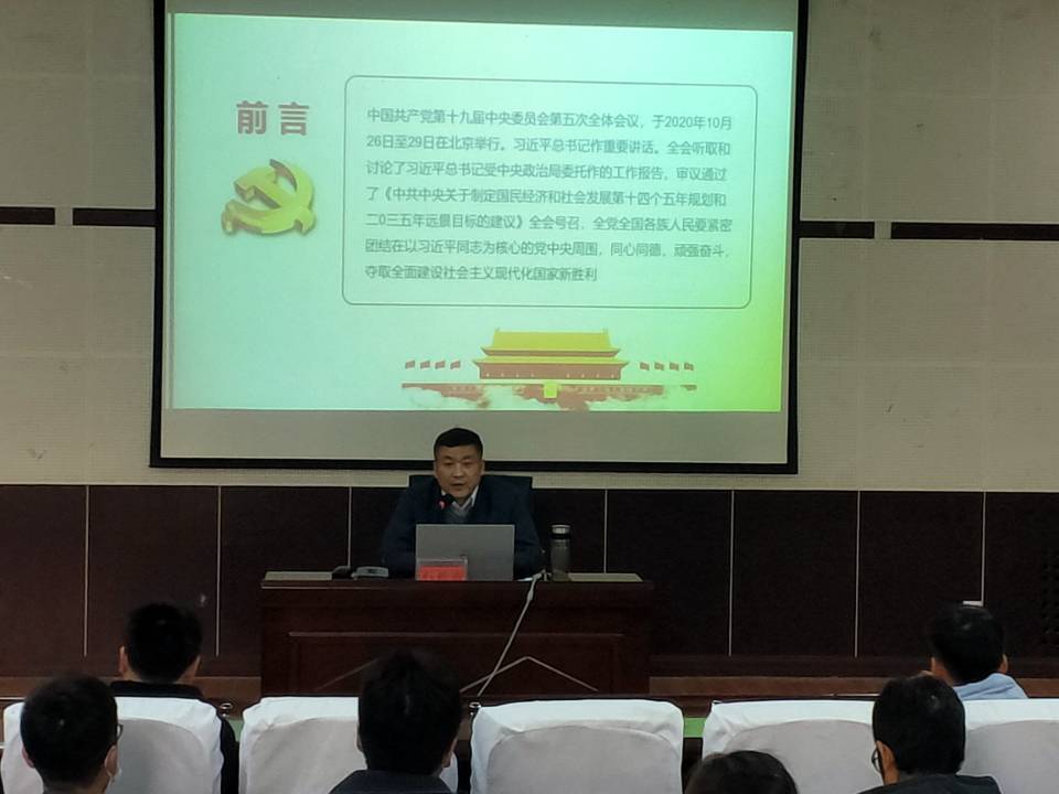 石长青从党的十九届五中全会召开的背景、指导思想、取得的成就、面临的机遇和挑战、2035年远景目标、十四五时期经济社会发展必须遵循的原则等方面进行了深刻解读,要求全体教职工要增强“四个意识”、坚定“四个自信”,做到“两个维护”,深刻领会全会精神,以昂扬向上的斗志,为学校事业发展谱写新华章。