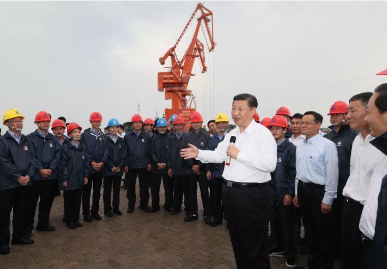 ↑2017年4月19日下午,中共中央总书记、国家主席、中央军委主席习近平在广西北海市铁山港公用码头亲切看望在现场作业的工人们。新华社记者 鞠鹏 摄
