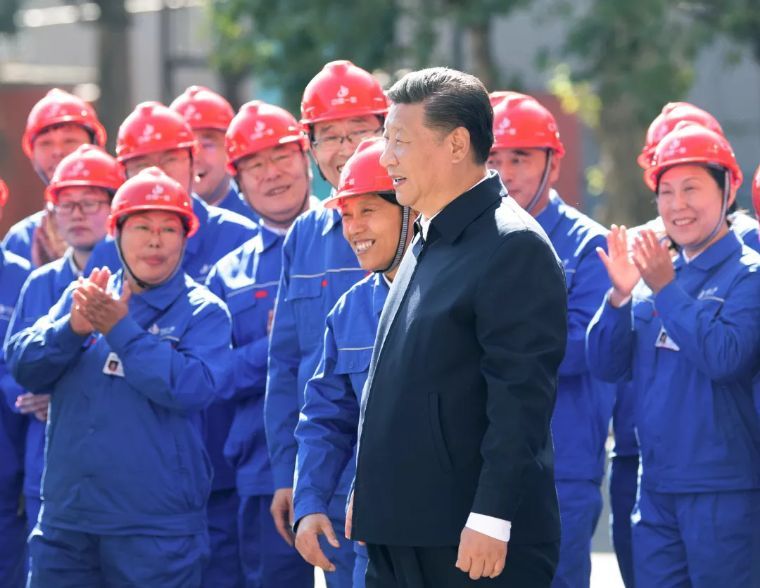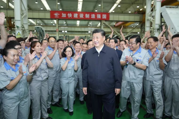 ↑2019年9月17日下午,中共中央总书记、国家主席、中央军委主席习近平在河南郑州煤矿机械集团股份有限公司总装车间同工人们亲切交流,鼓励他们加强自主创新,争创发展战略优势。新华社记者 鞠鹏 摄